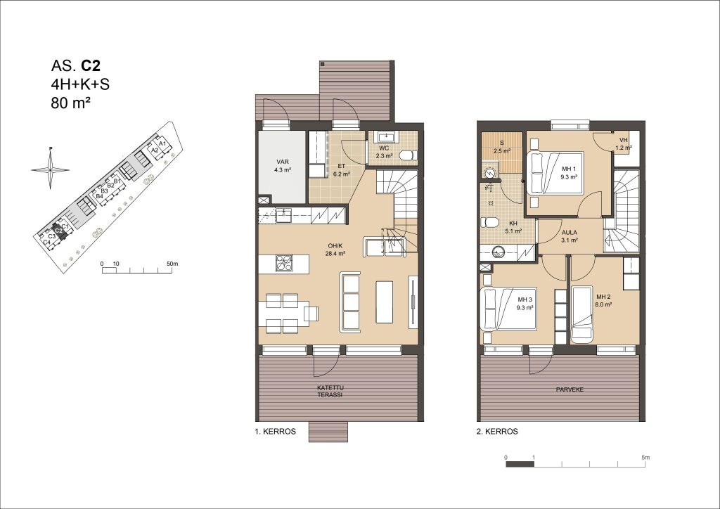 4,3 m2 lämmin varasto, pääoven vieressä.
