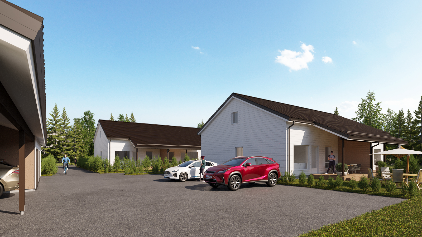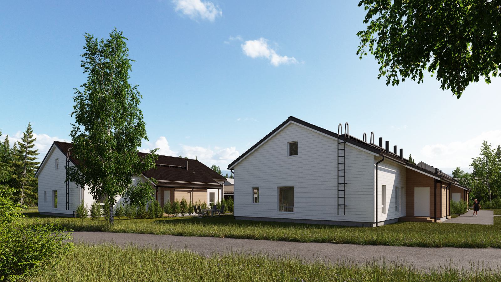 Asunto Oy Jyväskylän Voittola koostuu kolmesta paritalosta ja yhdestä talousrakennuksesta.