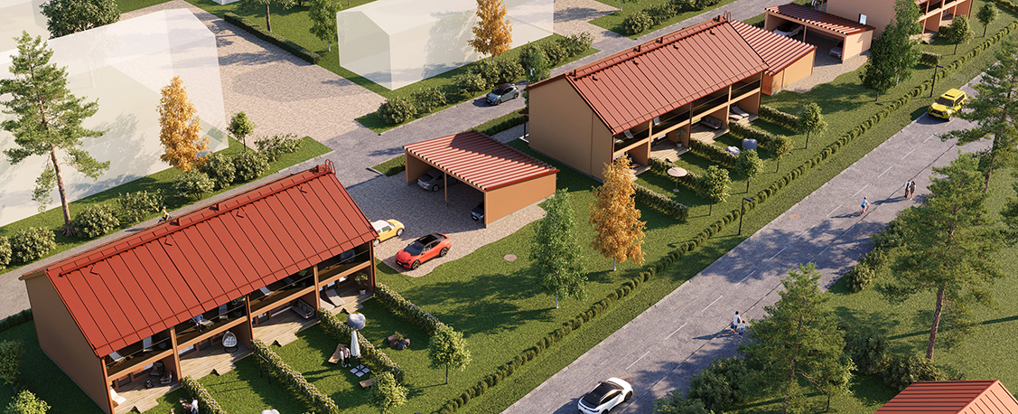 Kolmen paritalon muodostama asunto-osakeyhtiö.
